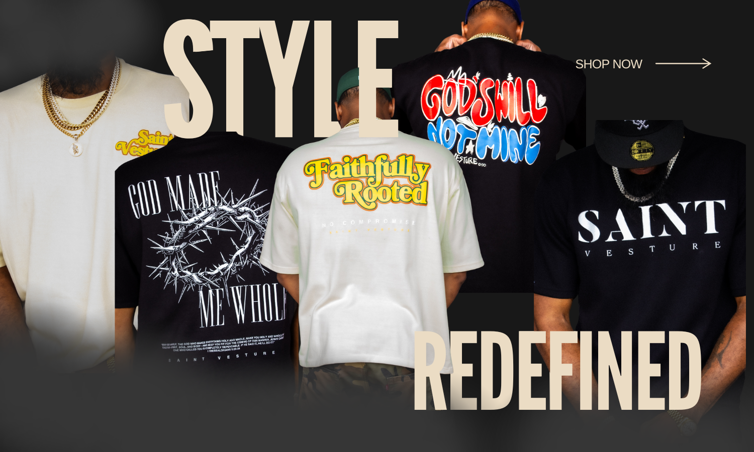 At Saint Vesture we are all about clothing designed to reflect your unwavering faith and belief in Jesus Christ EVERYDAY- not just on Sundays. Every garment is created with purpose: to inspire us to embrace God's truth and live boldly for God. Together, we can redefine what it means to walk with Christ, stylishly and confidently.