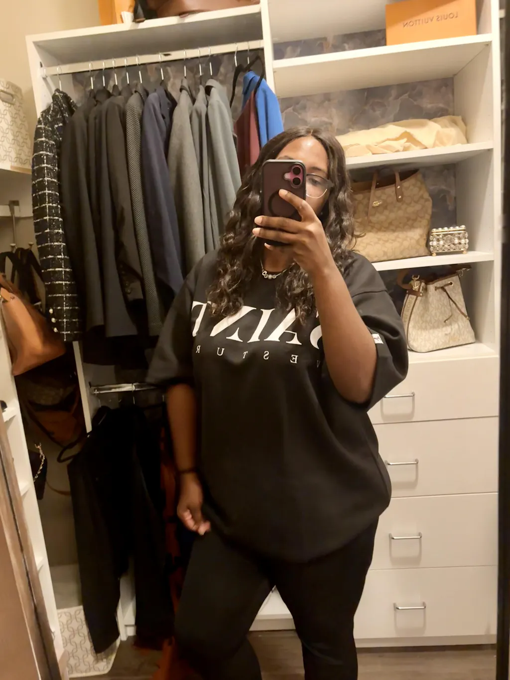Shirt is designed for a relaxed, oversized fit- for a more fitted look, we recommend sizing down.